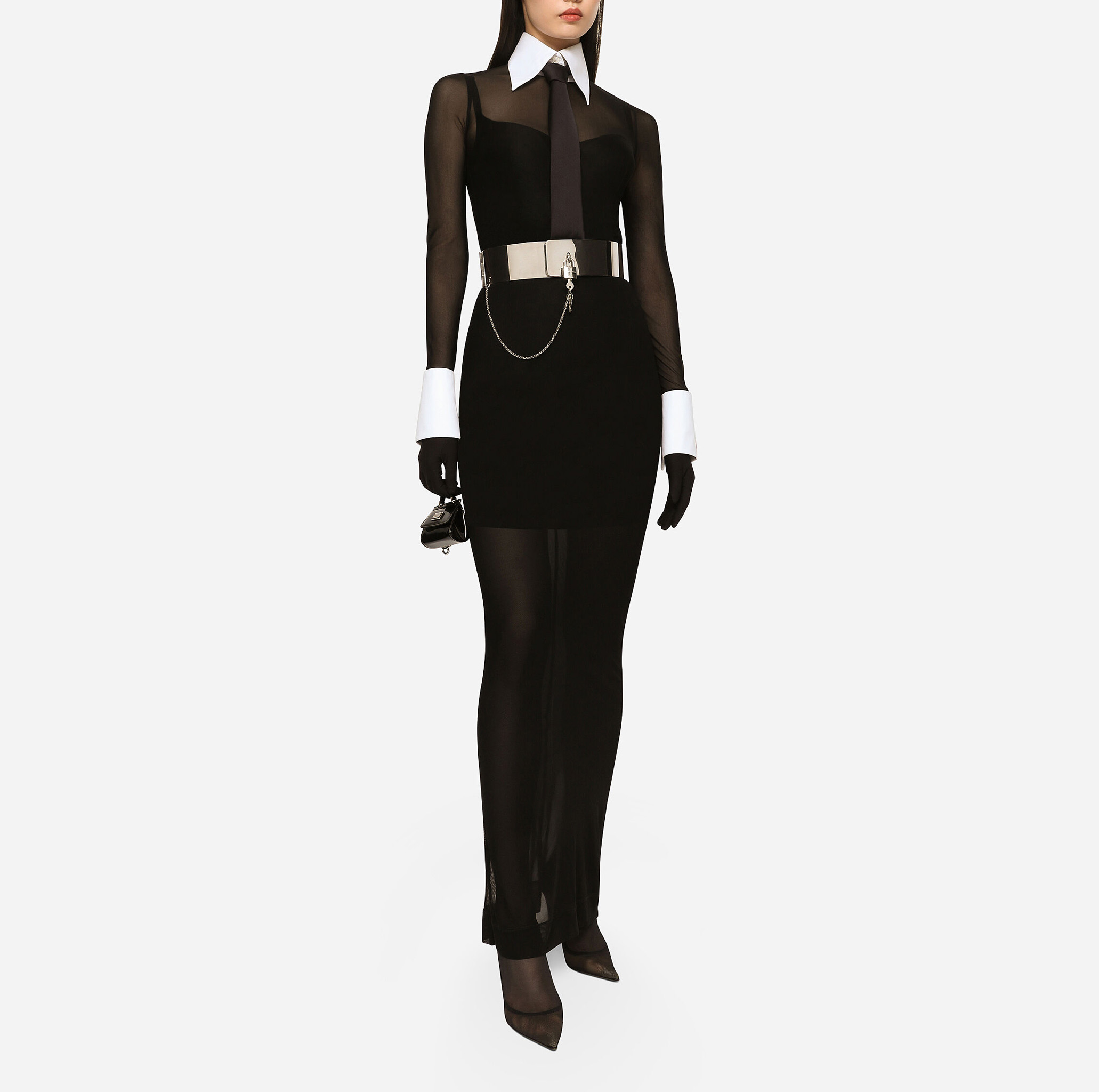 KIM DOLCE&GABBANA LONG TULLE DRESS WITH SHIRT DETAILING