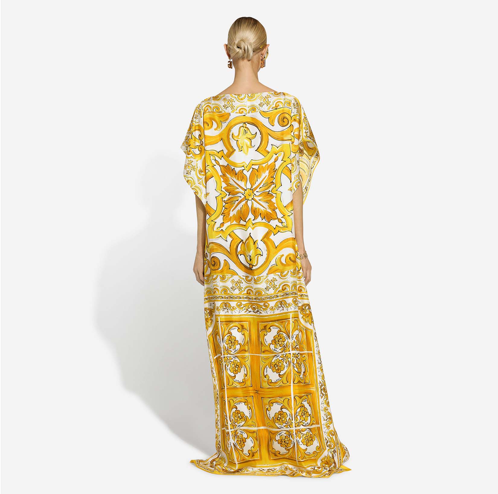 قفطان من حرير التويل بطبعة المجوليكا: